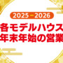 【2025-2026年】各モデルハウスの年末年始の営業について2025年12月23日 お知らせ各モデルハウスの年末年始の営業について 2025~2026年の年末年始のお休み期間は下記の通りです。 前の投稿KTS住宅フェア「焼肉なべしまお食事券プレゼントキャンペーン」 次の投稿KTS住宅フェア「バレンタインフェス」